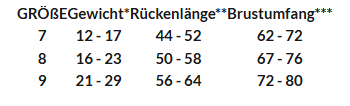 Angepasstes Verhältnis zwischen Rückenlänge und Brustumfang